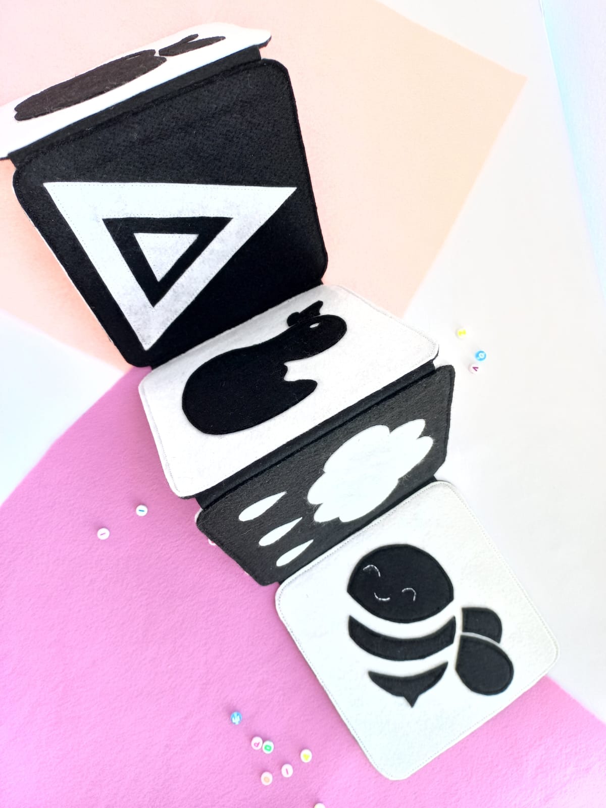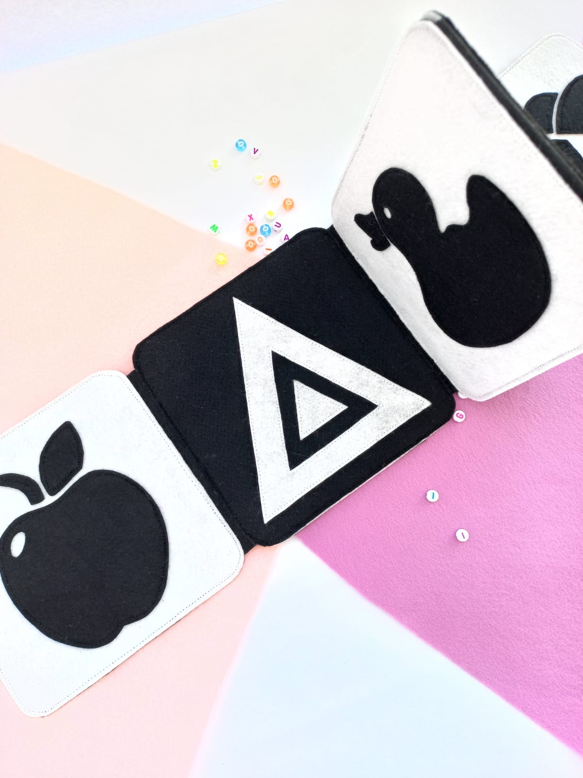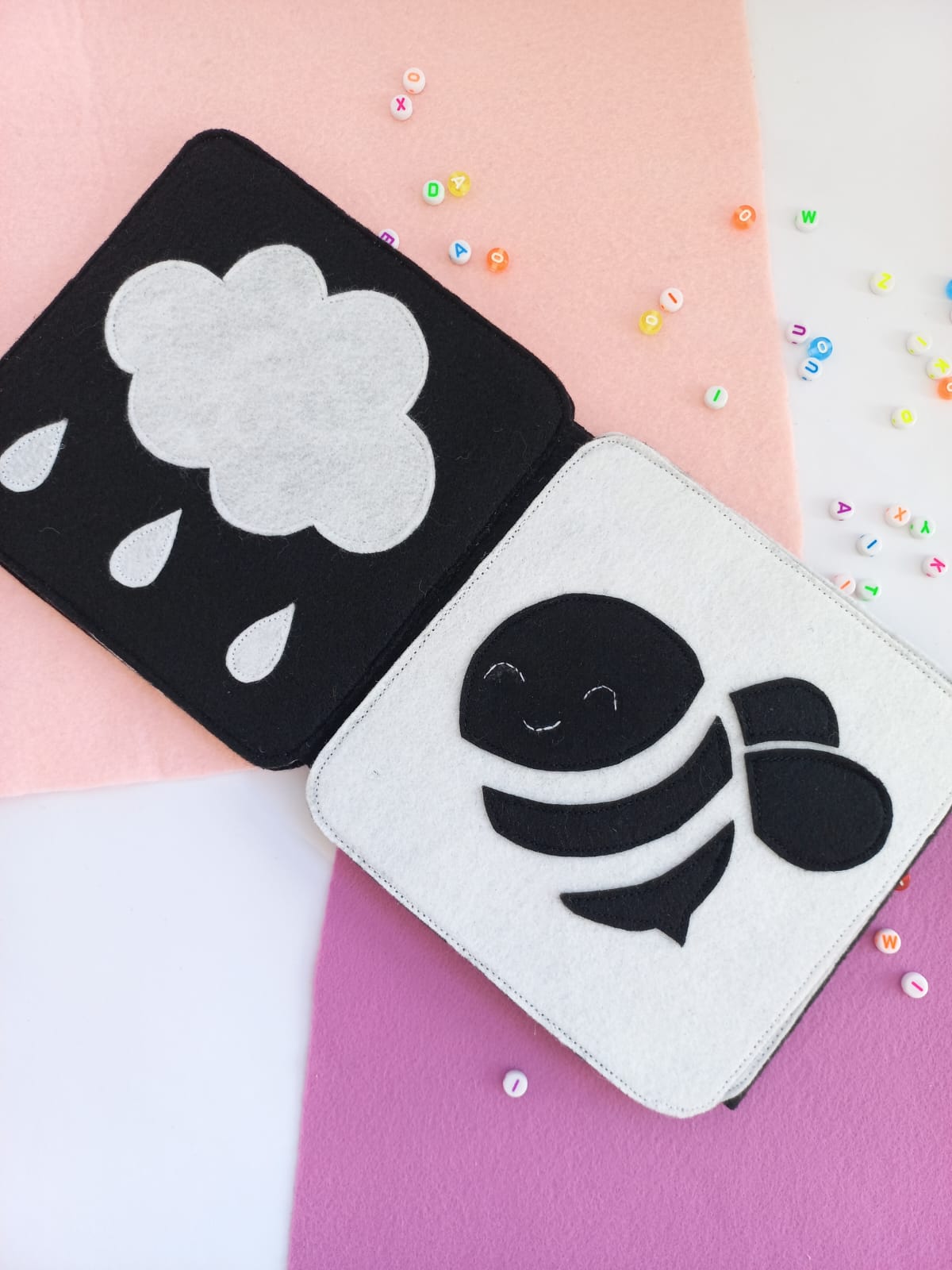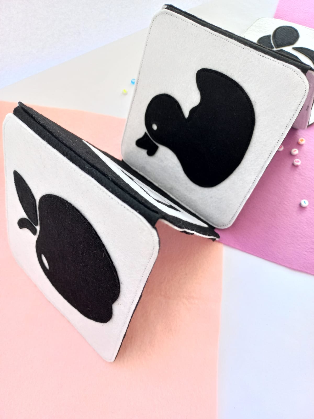 Desenvolvido para bebês a partir de os primeiros meses de vida. Confeccionado em feltro macio e seguro. Com cores marcantes como preto e branco, estimula o desenvolvimento visual, a atenção e a curiosidade desde os primeiros meses de vida. Suas páginas interativas incentivam o toque ,a exploração sensorial e o vinculo afetivo durante a leitura.